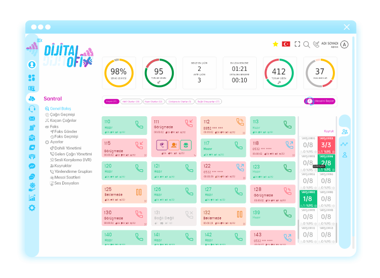 Gösterge Paneli Çağrı Geçmişi Saatlik Çağrı Sayısı Temsilci Çağrı Sayısı Mola Raporları Kuyruk Raporları Etiketlenmiş Çağrılar Gösterge Paneli Çağrılarınızı Günlük, Aylık, Haftalık Olarak Takip Edin Cevaplanan, cevaplanmayan sayılarını, arama maliyetlerinizi, saatlik, günlük olarak çağrı yoğunluğunuzu grafiksel olarak görüntüleyebilirsiniz. Çağrı Geçmişi Tüm Çağrı Geçmişine Erişin Anlık olarak çağrı geçmişinde geriye dönük tüm çağrı hareketleri listelenir. Saatlik […]